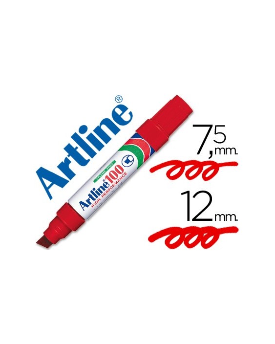 Rotulador artline marcador permanente 100 rojo punta biselada