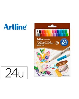 Rotulador artline supreme brush pintura base agua punta tipo pincel trazo fino bolsa 24 unidades colores surtidos