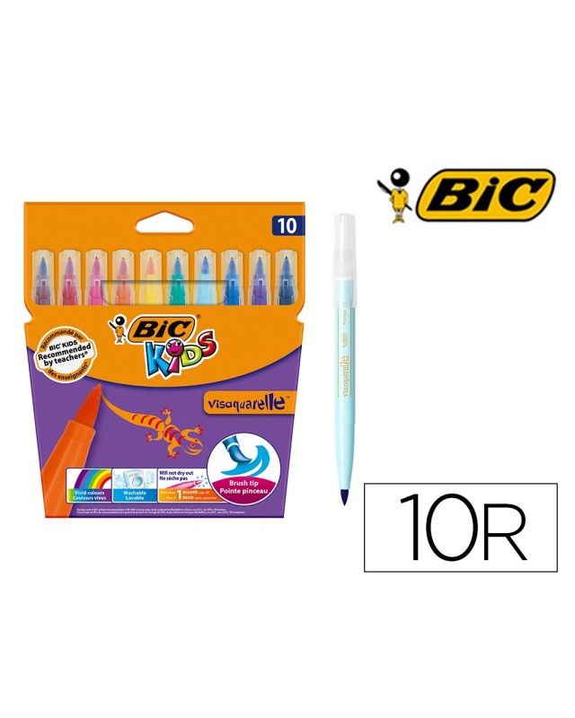 Rotulador bic kids visaquarelle estuche de 10 colores punta pincel tinta base de agua