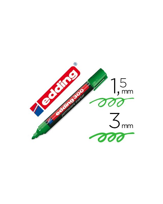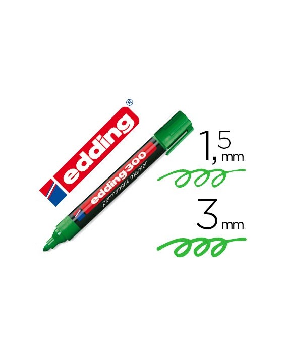 Rotulador edding marcador permanente 300 verde punta redonda 1,5-3 mm recargable
