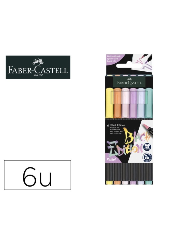 Rotulador faber castell edicion black punta de pincel pastel caja de 6 unidades colores surtidos