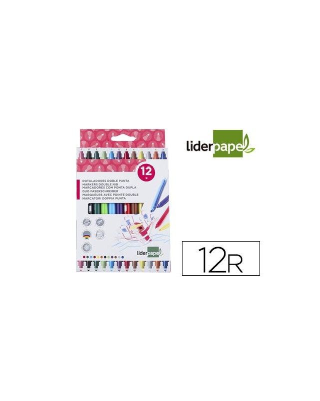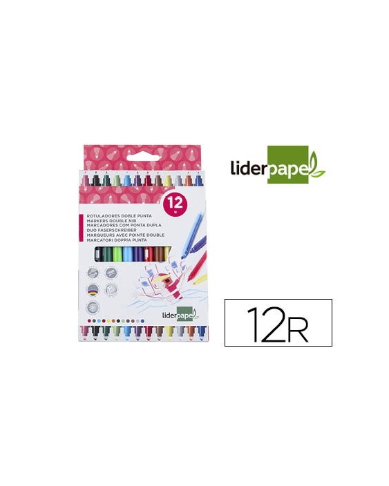 Rotulador liderpapel duo doble punta fina y gruesa caja de 12 unidades colores surtidos