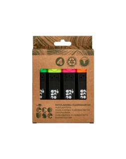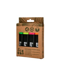 Rotulador liderpapel ecouse fluorescente fabricado con 68% plastico reciclado caja de 4 unidades colores surtidos