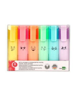 Rotulador liderpapel fluorescente pastel punta biselada estuche de 6 unidades colores surtidos