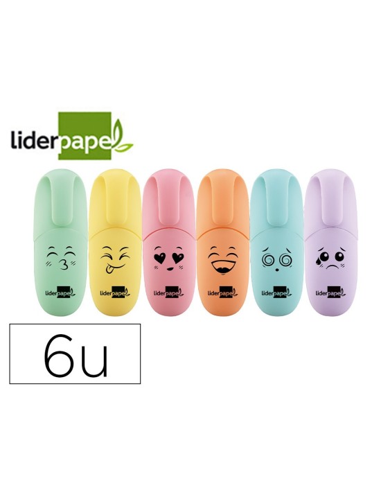 Rotulador liderpapel mini fluorescente pastel punta biselada estuche de 6 unidades colores surtidos