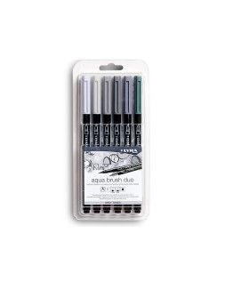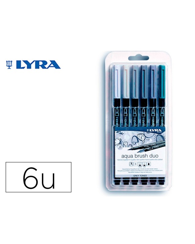 Rotulador lyra aqua brush acuarelable doble punta y pincel tonos grises blister de 6 unidades surtidas