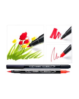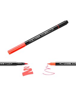 Rotulador de dos puntas de excelente calidad. La punta fina puede utilizarse para dibujos de precisión, en el dibujo de siluetas o en la ejecución de contornos y detalles. Su segunda punta es amplia y flexible como un pincel. Permite una pincelada plana, muy blanda y, al mismo tiempo, limpia y segura. Las fibras de nylon proporcionan a la punta ancha una excelente elasticidad para pintar sobre superficies extensas, al tiempo que dan estabilidad a la punta fina para trazos más finos y una escritura precisa.