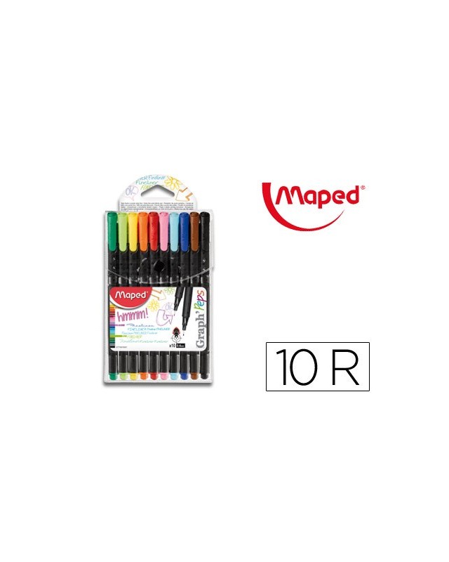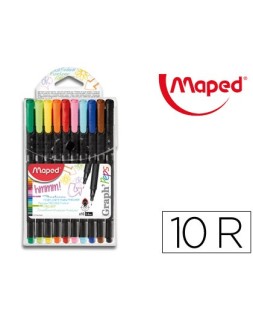 Rotulador maped punta de metal graph peps fine liner estuche de 10 colores surtidos