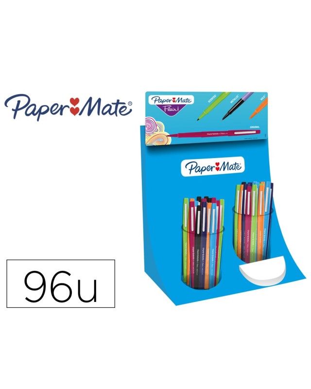 Rotulador paper mate flair punta de fibra expositor de 96 unidades colores surtidos