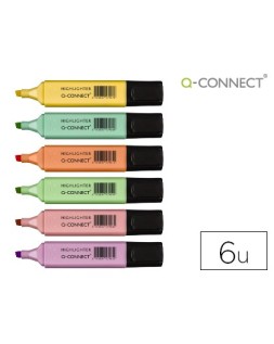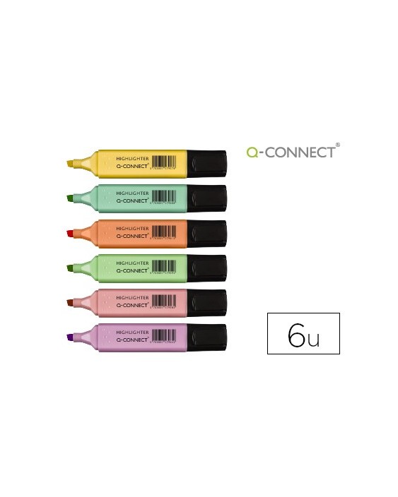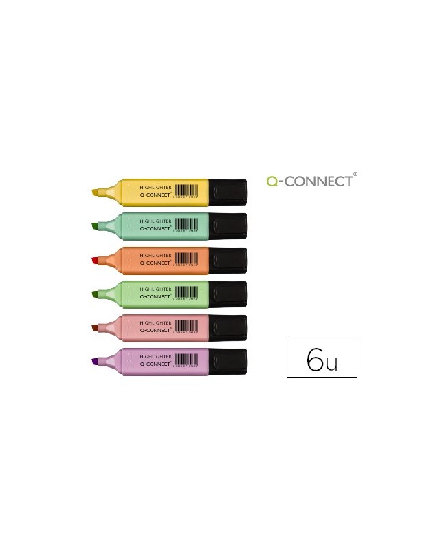 Rotulador q-connect fluorescente pastel punta biselada estuche de 6 unidades colores surtidos