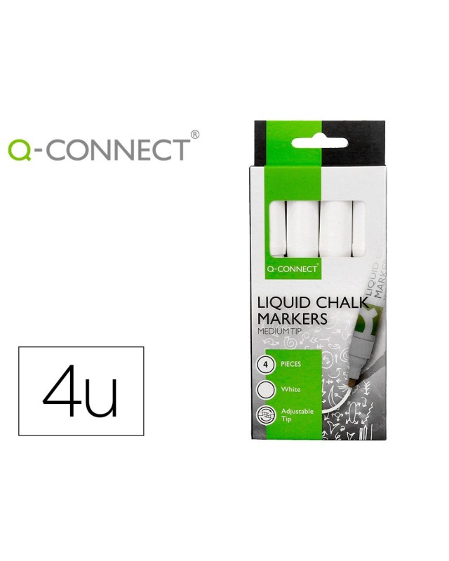 El rotulador de tiza líquida Q-Connect ofrece una solución versátil y vibrante para escribir en una variedad de superficies no porosas, como azulejos, pizarras blancas, adhesivos, plástico, metal. Con un diseño innovador de doble punta, que permite alternar entre una punta de bala de 1.5mm y una punta biselada de 3.0mm, este rotulador proporciona una amplia gama de opciones de escritura. Fabricado con materiales de alta calidad, incluido un barril, tapa y sostenedor de punta de PP, garantiza una experiencia duradera y sin problemas. Con una tinta de calidad que proporciona un flujo suave y uniforme, este rotulador está disponible en una variedad de colores vivos y llamativos para satisfacer todas sus necesidades de marcado y preseesentación. Caja con 4 rotuladores color blanco.