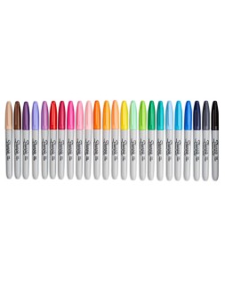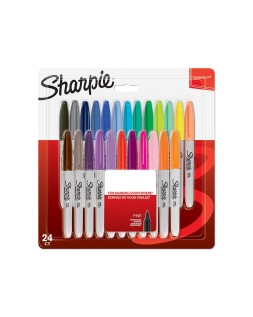 Este blister incluye una atractiva gama de 24 colores de Sharpie Fine con ancho de trazo 0,9 mm. Los rotuladores permanentes Sharpie proporcionan niveles máximos de color y permanencia, y permiten transformar superficies convencionales en entusiastas expresiones creativas. Gracias a sus colores intensos, que se aplican en prácticamente cualquier superficie, estos rotuladores acabarán con el aburrimiento. La icónica tinta Sharpie se seca rápidamente y resiste el desgaste y el contacto con el agua. Las imitaciones no perduran, pero las creaciones de los rotuladores Sharpie duran para siempre. Con una llamativa punta fina diseñada para impresionar, los rotuladores permanentes Sharpie harán aflorar su lado más atrevido.