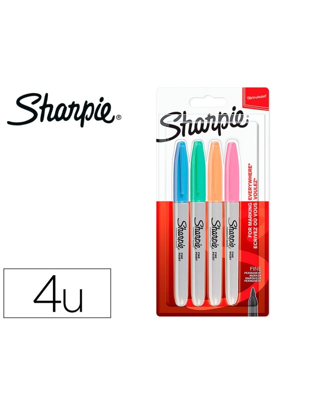Este blister contiene 4 Sharpie Fine en colores pastel Mint, Peach, Sky, Electric Pink. Los rotuladores permanentes Sharpie proporcionan niveles máximos de color y permanencia, y permiten transformar superficies convencionales en entusiastas expresiones creativas. Gracias a sus colores intensos, que se aplican en prácticamente cualquier superficie, estos rotuladores acabarán con el aburrimiento. La icónica tinta de los rotuladores permanentes Sharpie, original e inconfundible, se seca rápidamente y resiste el desgaste y el contacto con el agua. Las imitaciones no perduran, pero las creaciones de los rotuladores Sharpie duran para siempre. Con una llamativa punta fina diseñada para impresionar, los rotuladores permanentes Sharpie ie harán aflorar su lado más atrevido.