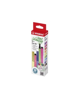 Estuche Zig Zag con 18 rotuladores premium STABILO Pen 68. Rotulador de alta calidad con punta de fibra e intensos colores para trazos fuertes y amplias zonas a colorear. Pigmentos seleccionados con gran brillo y luminosidad. Punta media resistente. Ancho de trazo 1 mm. Inodoro, con tinta al agua. Tapón ventilado. Hasta 24 horas destapados sin secarse. Punto de referencia en el mercado de los rotuladores, indispensable en cualquier sección.Premios al diseño: SPIEL GUT Premio 2017.