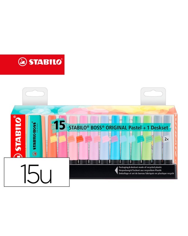 Rotulador stabilo boss fluorescente 70 pastel deskset estuche de 15 unidades colores surtidos