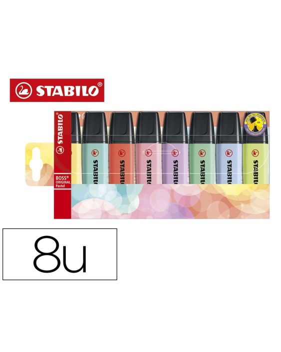 Rotulador stabilo boss fluorescente 70 pastel estuche de 8 unidades colores surtidos