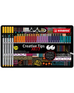 Rotulador stabilo creative tips arty line pastel 5 puntas diferentes por color estuche metalico de 30