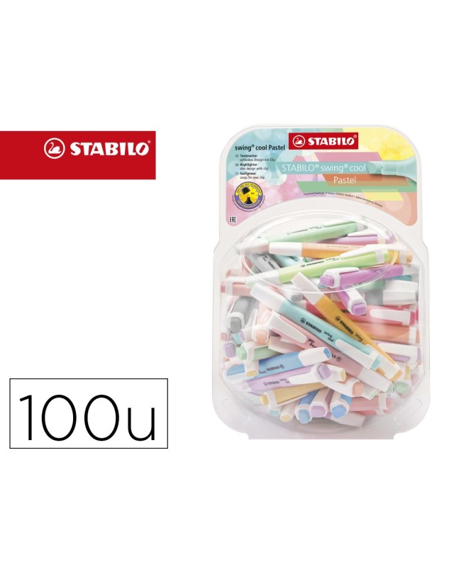 Rotulador stabilo fluorescente fino swing cool pastel bombonera de 100 unidades colores surtidos