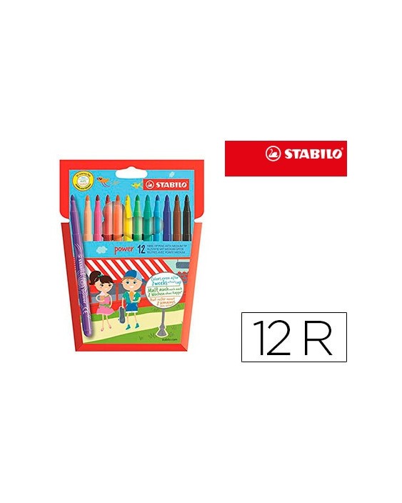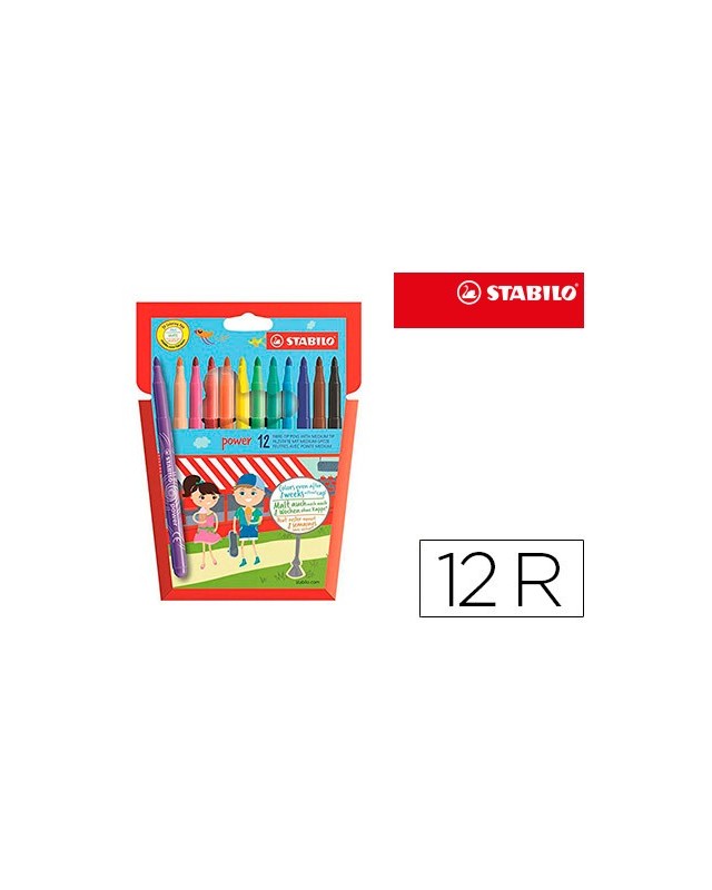 Rotulador stabilo power caja de 12 unidades colores surtidos