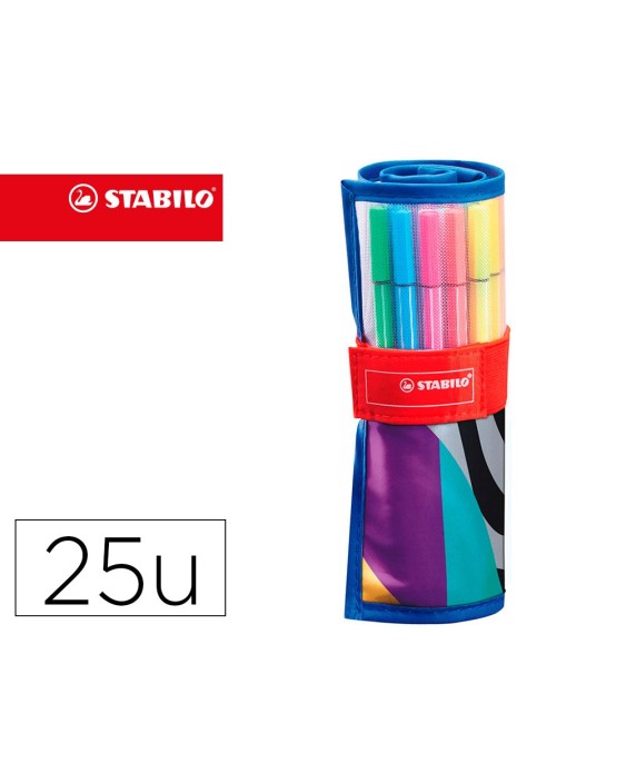 Rotulador stabilo punta de fibra pen 68 arty estuche rollerset de 25 unidades colores surtidos