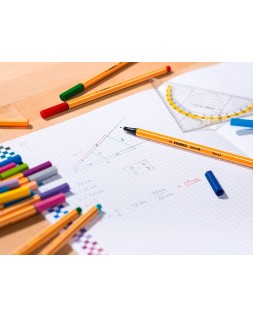 Rotulador con punta fina número uno en Europa. Con un diseño hexagonal de finas líneas inconfundibles. Punta de fibra con refuerzo de metal para una larga vida. Apta para usar con reglas y plantillas. Tinta con base al agua. Larga vida sin tapón. Trazo de 0,4 mm.