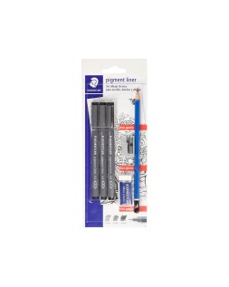 Rotulador calibrado para escribir, esbozar y dibujar con punta engarzada en metal, ideal para usar con reglas y plantillas, tinta pigmentada indeleble de secado rápido, resistente al agua y a la luz, clip metálico, cuerpo de polipropileno (PP), escritura en color negro.