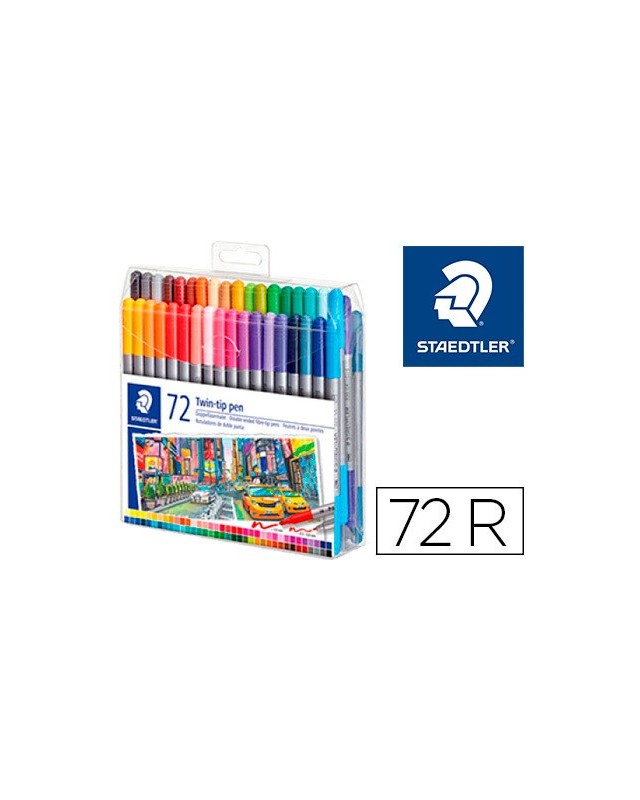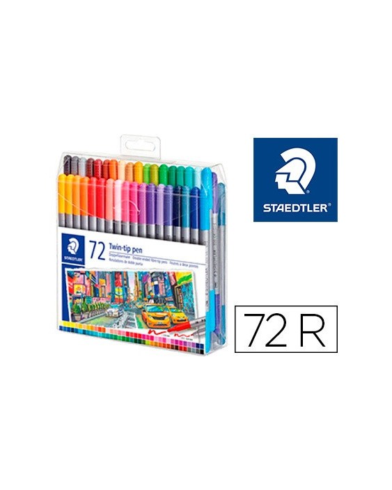 Rotulador staedtler doble punta de fibra 3200 estuche de 72 unidades colores surtidos