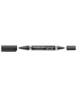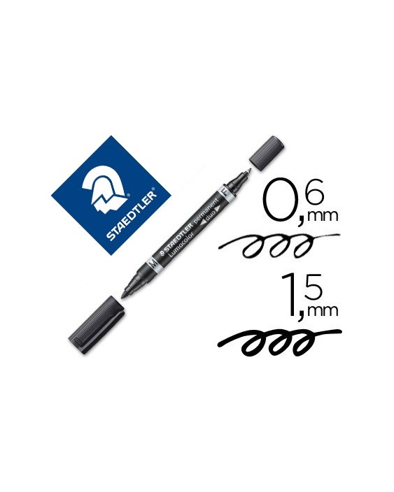 Rotulador permanente con punta redonda fina por un lado y gruesa del otro. Una punta es perfecta para escribir (ancho de línea: aprox. 0,6 mm), la otra es idónea para marcar (ancho de línea: aprox. 1,5 mm). Tinta antisecado DRY SAFE (test ISO 554). Excelentes tintas con propiedades antiemborronamiento y resistentes al agua. Capuchón con clip intercambiable. Trazo entre 0,6 y 1,5 mm.