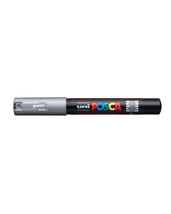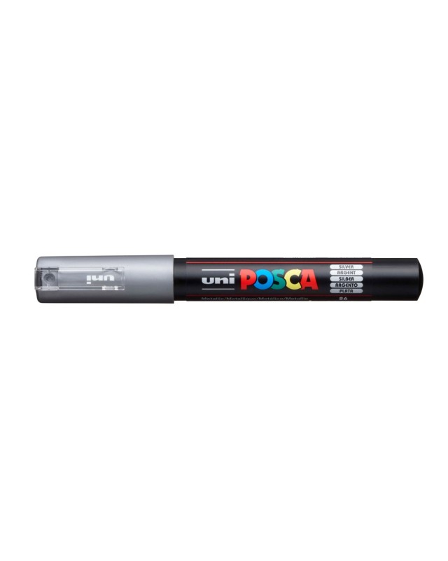 Marcador de pintura no permanente, base agua. No es tóxico Punta de poliéster cónica PC1M de 0,7mm Linea fina Pinta sobre cualquier superficie: metal , vidrio, plástico, piedra, tela, terracota, porcelana y muchos más Color opaco: dejar secar después de la aplicación y la nueva cap de pintura, cubrirá completamente el color anteiror. Plata
