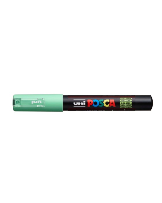 Marcador de pintura no permanente, base agua. No es tóxico Punta de poliéster cónica PC1M de 0,7mm Linea fina Pinta sobre cualquier superficie: metal , vidrio, plástico, piedra, tela, terracota, porcelana y muchos más Color opaco: dejar secar después de la aplicación y la nueva cap de pintura, cubrirá completamente el color anteiror. Verde Claro