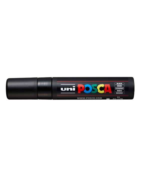 Marcador de pintura no permanente, base agua. No es tóxico Punta de poliéster biselada PC17K 15,0 mm Linea muy gruesa Pinta sobre cualquier superficie: metal , vidrio, plástico, piedra, tela, terracota, porcelana y muchos más Color opaco: dejar secar después de la aplicación y la nueva cap de pintura, cubrirá completamente el color anteiror. Negro