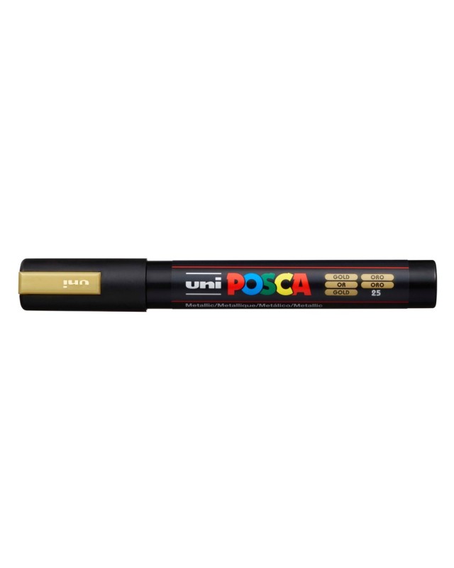 Marcador de pintura no permanente, base agua. No es tóxico Punta en forma de bala de poliéster PC5M de 1,8mm - 2,5mm Pinta sobre cualquier superficie: metal , vidrio, plástico, piedra, tela, terracota, porcelana y muchos más Color opaco: dejar secar después de la aplicación y la nueva cap de pintura, cubrirá completamente el color anteiror. Oro