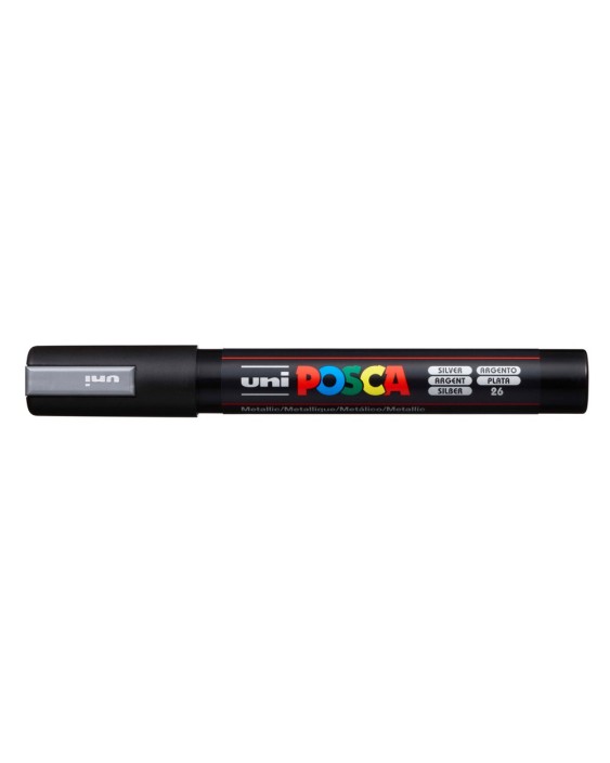 Marcador de pintura no permanente, base agua. No es tóxico Punta en forma de bala de poliéster PC5M de 1,8mm - 2,5mm Pinta sobre cualquier superficie: metal , vidrio, plástico, piedra, tela, terracota, porcelana y muchos más Color opaco: dejar secar después de la aplicación y la nueva cap de pintura, cubrirá completamente el color anteiror. Plata