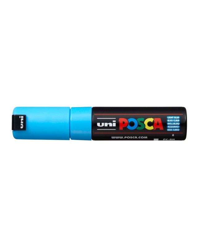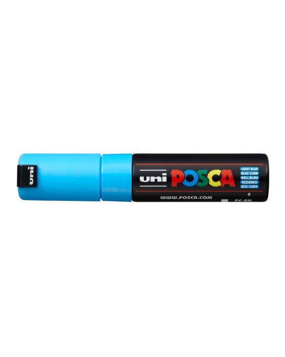 Marcador de pintura no permanente, base agua. No es tóxico Punta biselada acrílica PC8K de 8,0 mm Pinta sobre cualquier superficie: metal , vidrio, plástico, piedra, tela, terracota, porcelana y muchos más Color opaco: dejar secar después de la aplicación y la nueva cap de pintura, cubrirá completamente el color anteiror. Azul claro