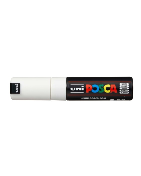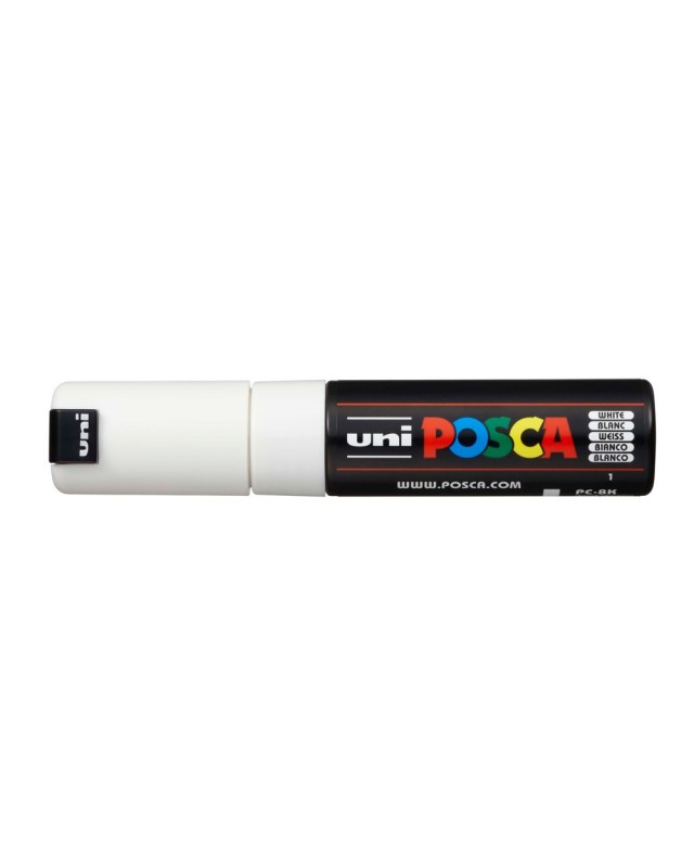 Marcador de pintura no permanente, base agua. No es tóxico Punta biselada acrílica PC8K de 8,0 mm Pinta sobre cualquier superficie: metal , vidrio, plástico, piedra, tela, terracota, porcelana y muchos más Color opaco: dejar secar después de la aplicación y la nueva cap de pintura, cubrirá completamente el color anteiror. Blanco