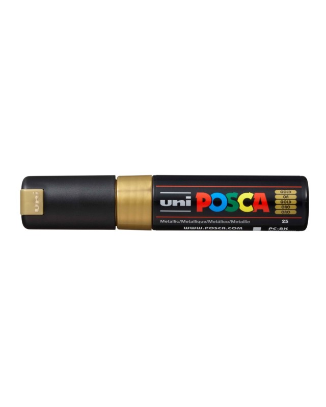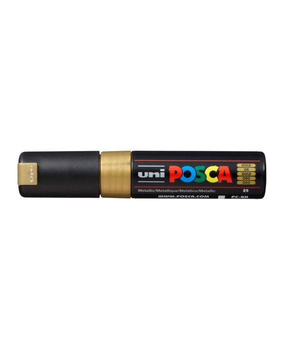 Marcador de pintura no permanente, base agua. No es tóxico Punta biselada acrílica PC8K de 8,0 mm Pinta sobre cualquier superficie: metal , vidrio, plástico, piedra, tela, terracota, porcelana y muchos más Color opaco: dejar secar después de la aplicación y la nueva cap de pintura, cubrirá completamente el color anteiror. Oro