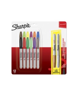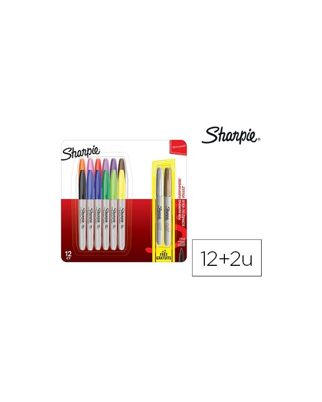Rotulador sharpie permanente punta fina blister de 12 unidades colores surtidos + 2 unidades color