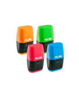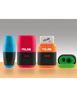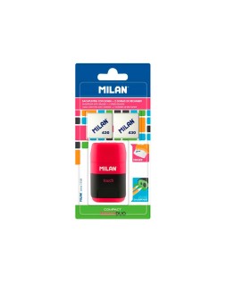 Sacapuntas milan compact touch duo plastico 2 usos con goma + 2 recambios de goma en blister