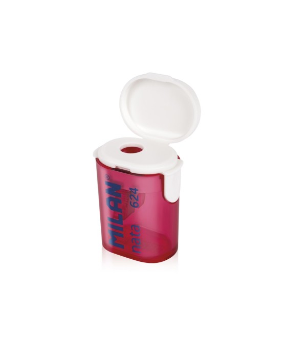 Sacapuntas estándar con depósito. Tiene una cuchilla de acero afilada y resistente, ideal para todo tipo de lápices, fabricada en Alemania. Sistema de seguridad: evita que la cuchilla se pueda separar del cuerpo del sacapuntas. Colección Milan nata® 624 inspirada en los colores y diseño originales de las gomas de borrar Milan, fabricadas en España desde 1918. Color rosa y blanco. Medidas sacapuntas: 4,2x3x2,3 cm.