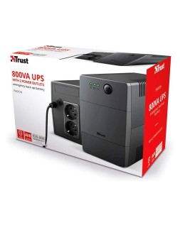 Sistema de alimentación ininterrumpido (SAI) de 800 VA con 2 tomas de corriente de pared, ideales para alimentar y proteger dispositivos electrónicos. Proporciona alimentación eléctrica provisionalmente mediante batería durante la interrupción del suministro, evita la pérdida de datos y daños al hardware. 2 tomas de pared con batería y protección contra sobretensiones para conectar el ordenador, periféricos, equipos de red, un televisor de pantalla plana, productos de domótica o un sistema de alarma. Salidas con protección contra sobretensiones, para evitar daños por sobrecargas, picos y fluctuaciones. Función AVR para garantizar una tensión de salida estable de 230 V. Alertas acústicas claras cuando se corta la electricidad, a fin de tener tiempo para guardar los archivo