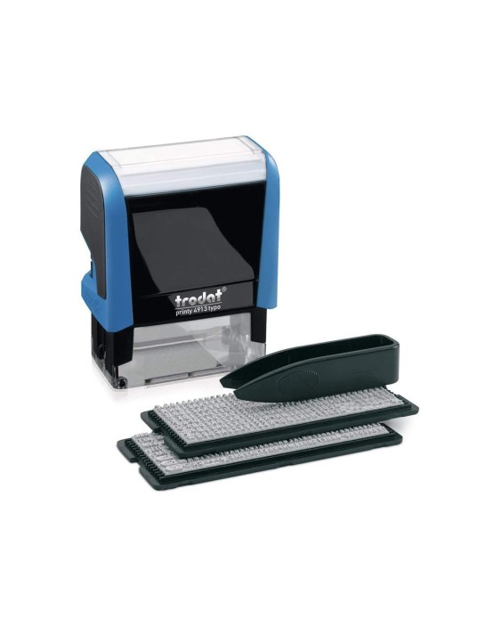 Sello de entintaje automático para componer sus propios textos. Incluye 2 imprentillas de letras, números y símbolos de uso frecuente ref 6004 con 288 caracteres de 4 mm de altura y ref. 6003 con 336 caracteres de 3 mm dealtura. Pinzas para colocarlos y estuche para guardarlos. Para componer hasta 5 líneas de texto. Almohadilla de tinta disponbile en negro.