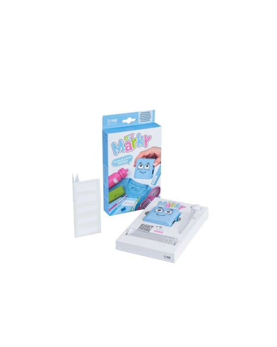 La forma más rápida, fácil y cómoda de proteger todos los objetos de los niños. Cada sello Marky viene con una almohadilla de tinta incorporada, continta especial que dura hasta 1000 impresiones, que se adhiere a los teji dos y a todas las superficies absorbentes. Pero eso no es todo, con las etiquetas incluidas en el set, incluso es posible personalizar en cualquier momento superficies no absorbentes, como botellas de bebida, fiambreras, bolígrafos y estuches de lápices. Y lo mejor, la tinta especialmente desarrollada para los sellos Marky dura muchos lavados, ya sea directamente sobre tejidos claros o sobre la cinta termo-adhesiva que viene incluida. Las etiquetas Marky, con un tratamiento especial, ayudan a personalizar los matmateriales no absorbentes y son 100% aptas para el l