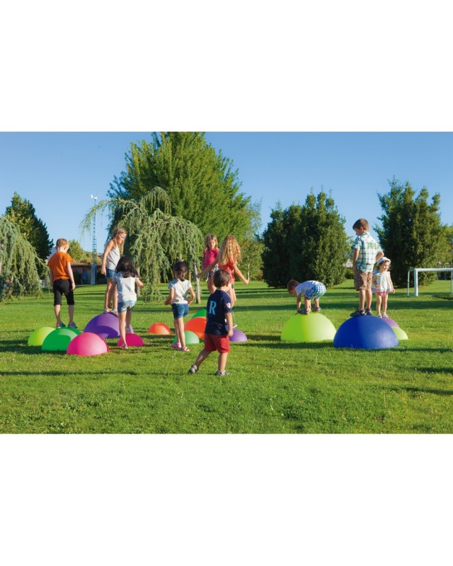 Set de 4 semiesferas de distintos tamaños desarrolla el equilibrio, la coordinación , la agilidad y otras habilidades motrices. Aumenta la habilidaddeportiva con diversión. Medidas de las semiesferas: Semiesfera 1: diámet ro: 750 mm , altura: 375 mm , peso: 4,2 kg. Semiesfera 2: diámetro: 600 mm, altura: 300 mm , peso: 2.7 kg. Semiesfera 3: diámetro: 445 mm , altura: 222 mm , peso: 1.8 kg. Semiesfera 4: diámetro: 350 mm , altura: 175 mm , peso: 0.9 kg. Edad recomendada de 3 a 12 años.