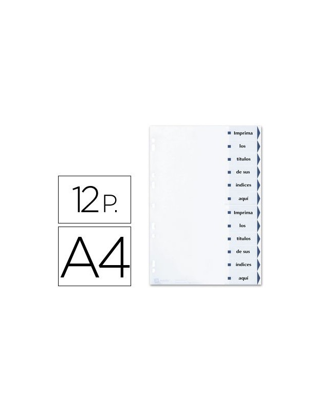 Cada juego incluye un índice imprimible en cualquier impresora, un juego de etiquetas transparentes para personalizar cada pestaña, una cubierta en PVC transparente, una contraportada en cartón extrafuerte y 6 ó 12 separadores sin perforar (para encuadernar) en cartulina ecológica de 190 g/m². Formato DIN A4.