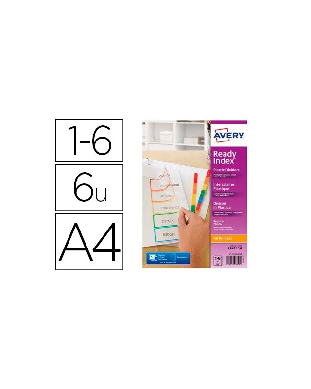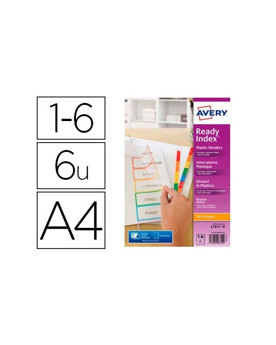Separador avery polipropileno din a4 6 pestañas imprimibles