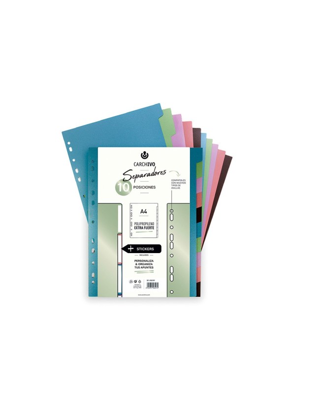 Separador carchivo polipropileno juego de 10 pestañas color metalizado