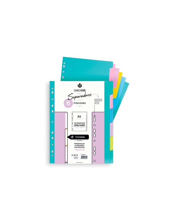 Separador carchivo polipropileno soft extra fuerte din a4 multitaladro juego de 6 posiciones