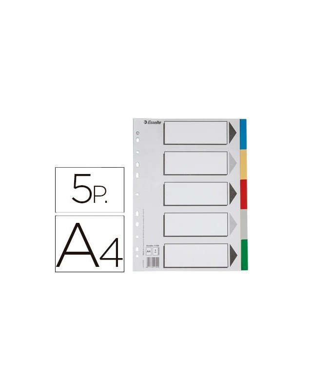 Separador esselte plastico juego de 5 separadores din a4 con 5 colores multitaladro