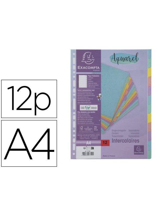 Separador exacompta aquarel cartulina lustrada juego de 12 separadores din a4 colores pastel