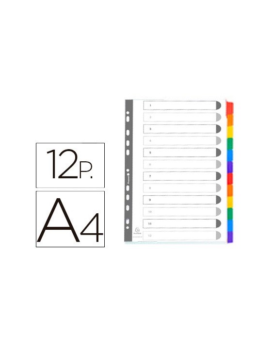 Separador exacompta cartulina juego de 12 separadores din a4 multitaladro color blanco